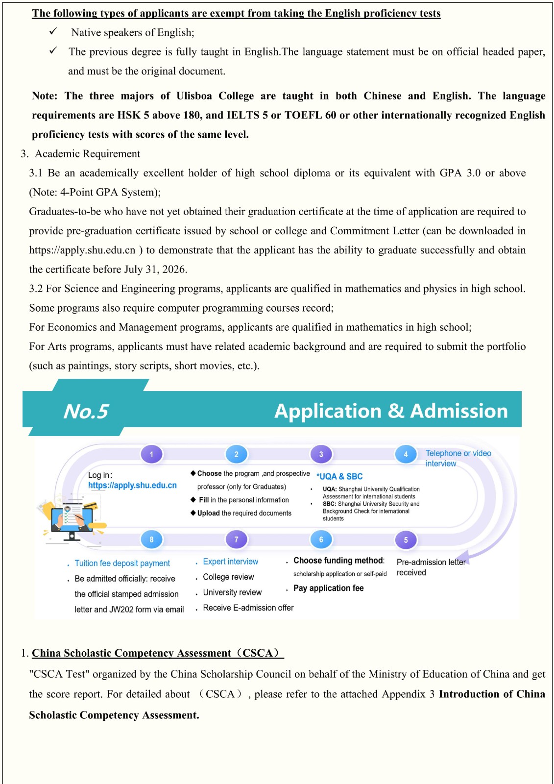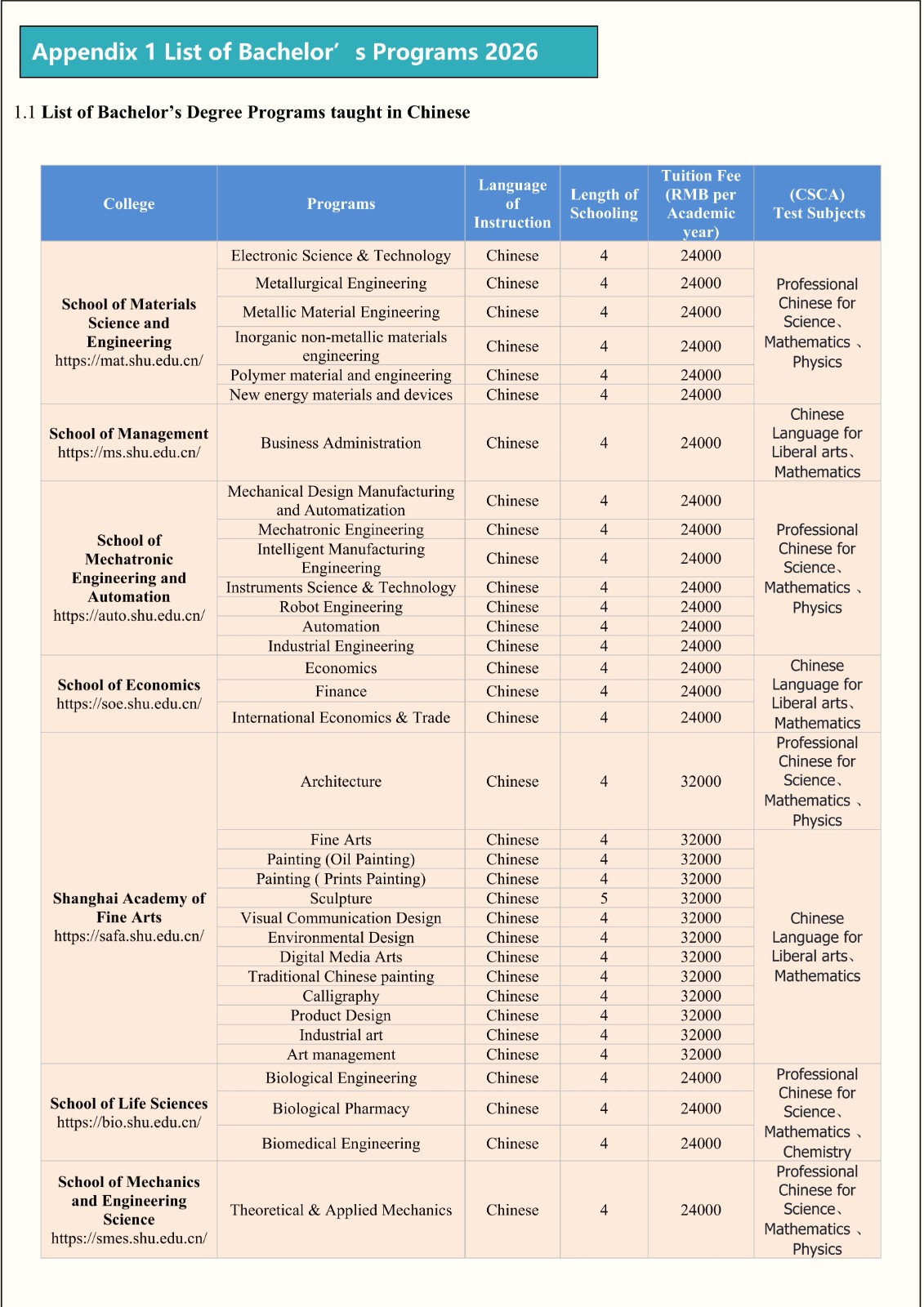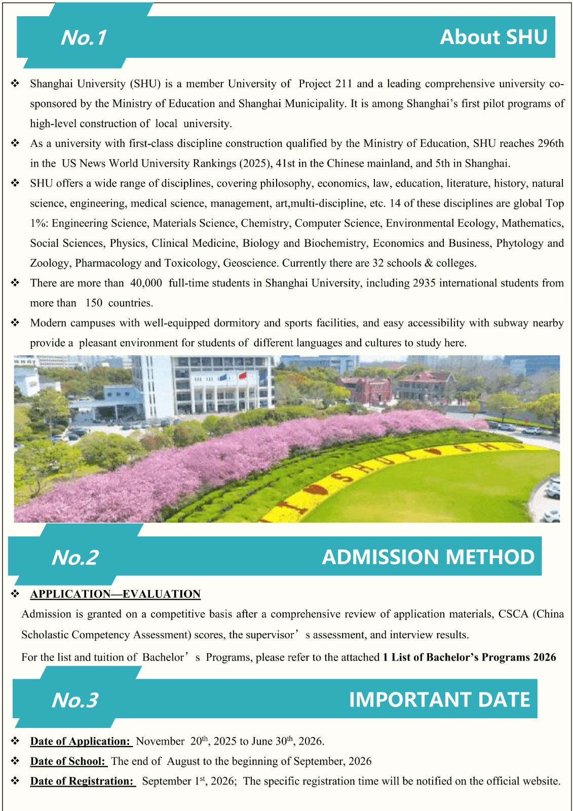 Application for Undergraduate Programs of Shanghai University 2026-2027