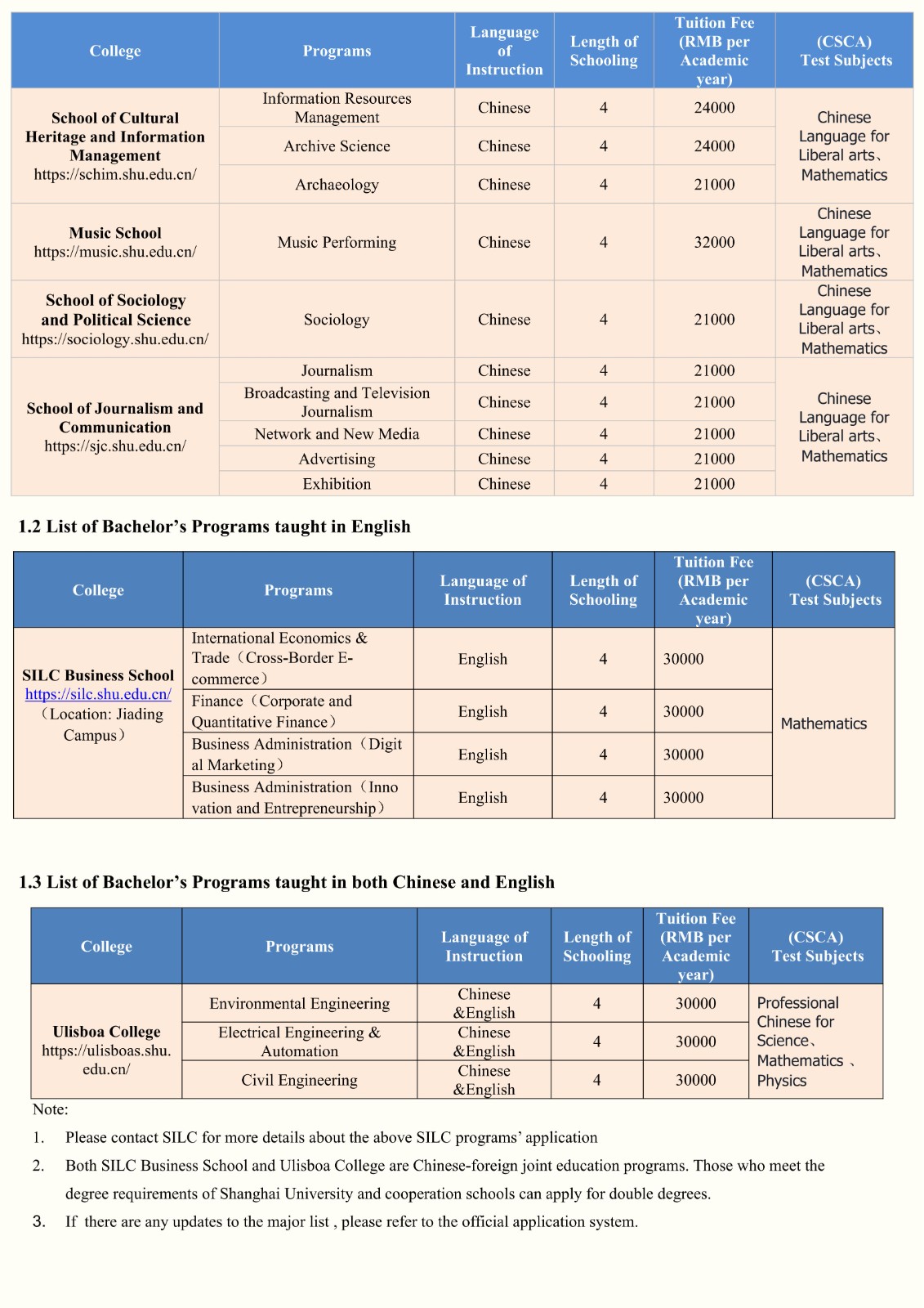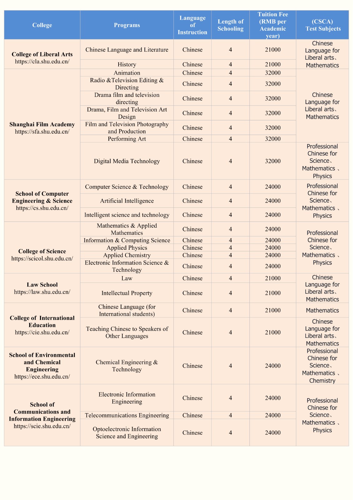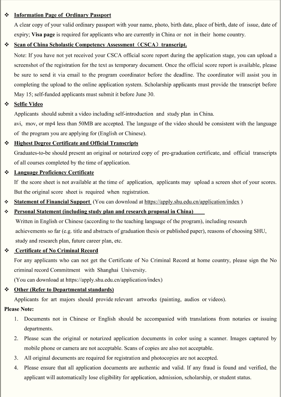 Application for Undergraduate Programs of Shanghai University 2026-2027