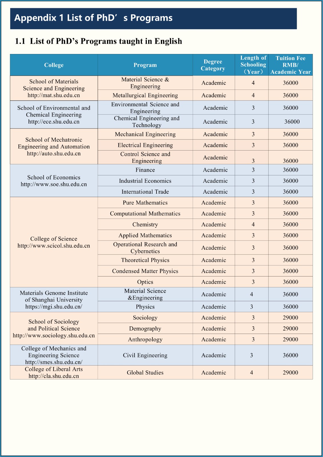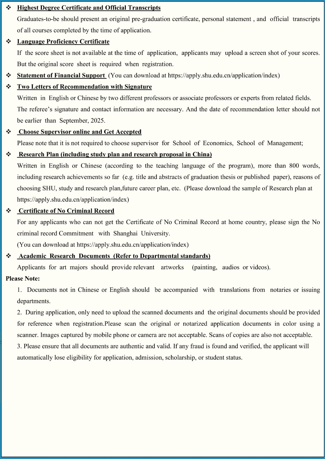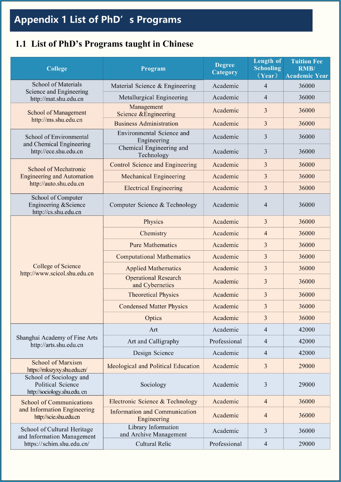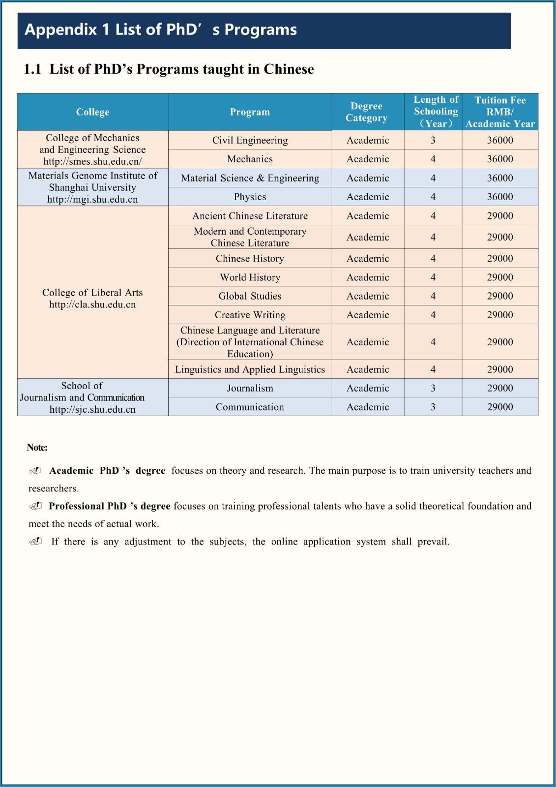 2026-2027 Application for PhD's Programs of Shanghai University