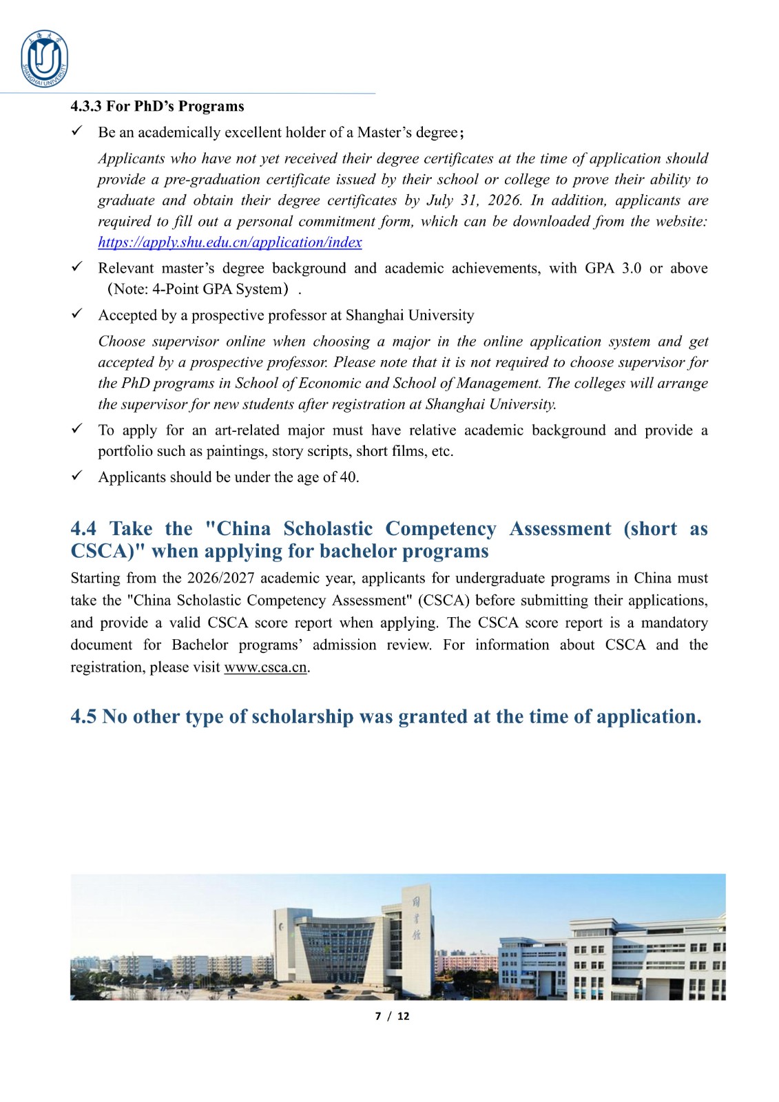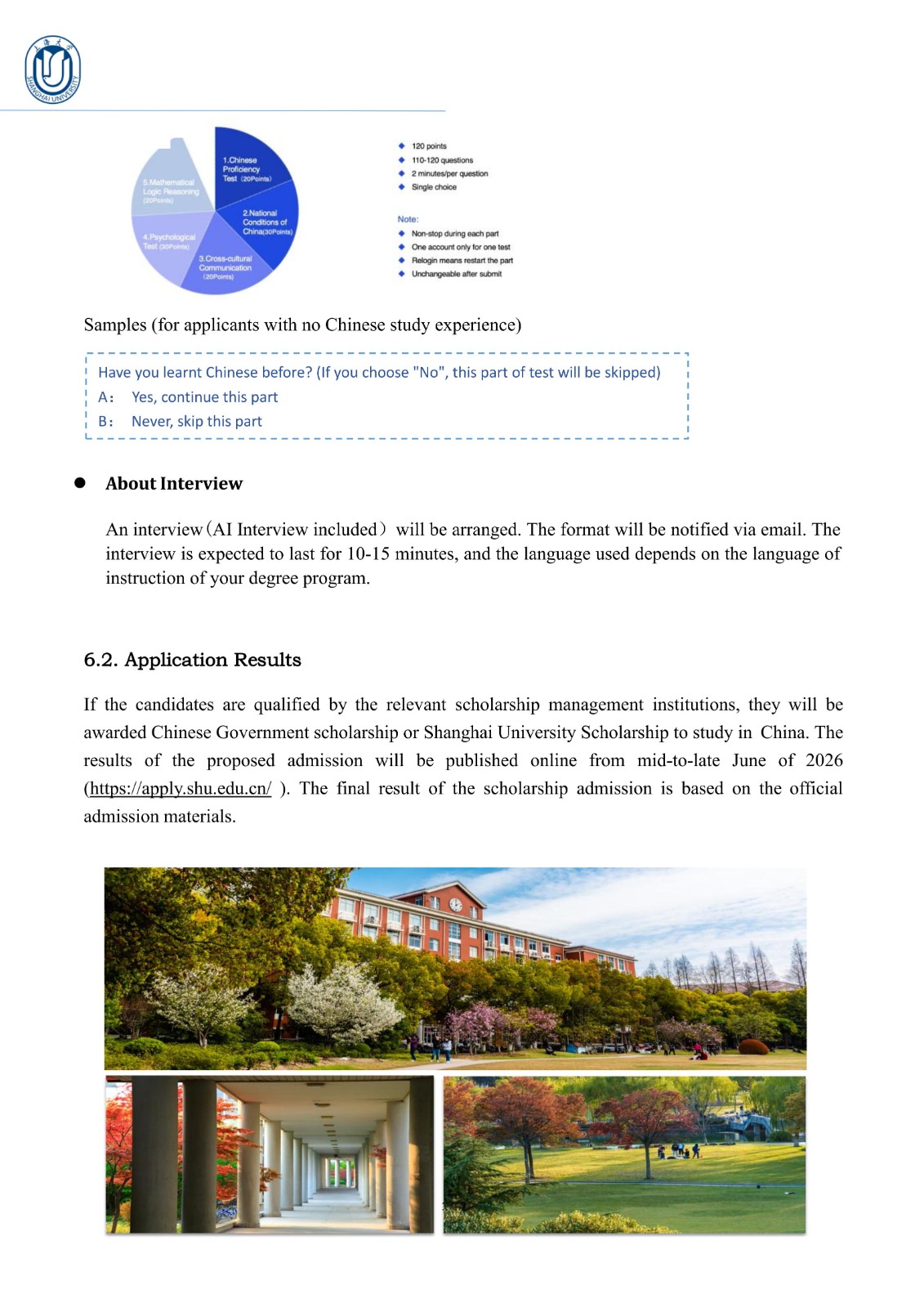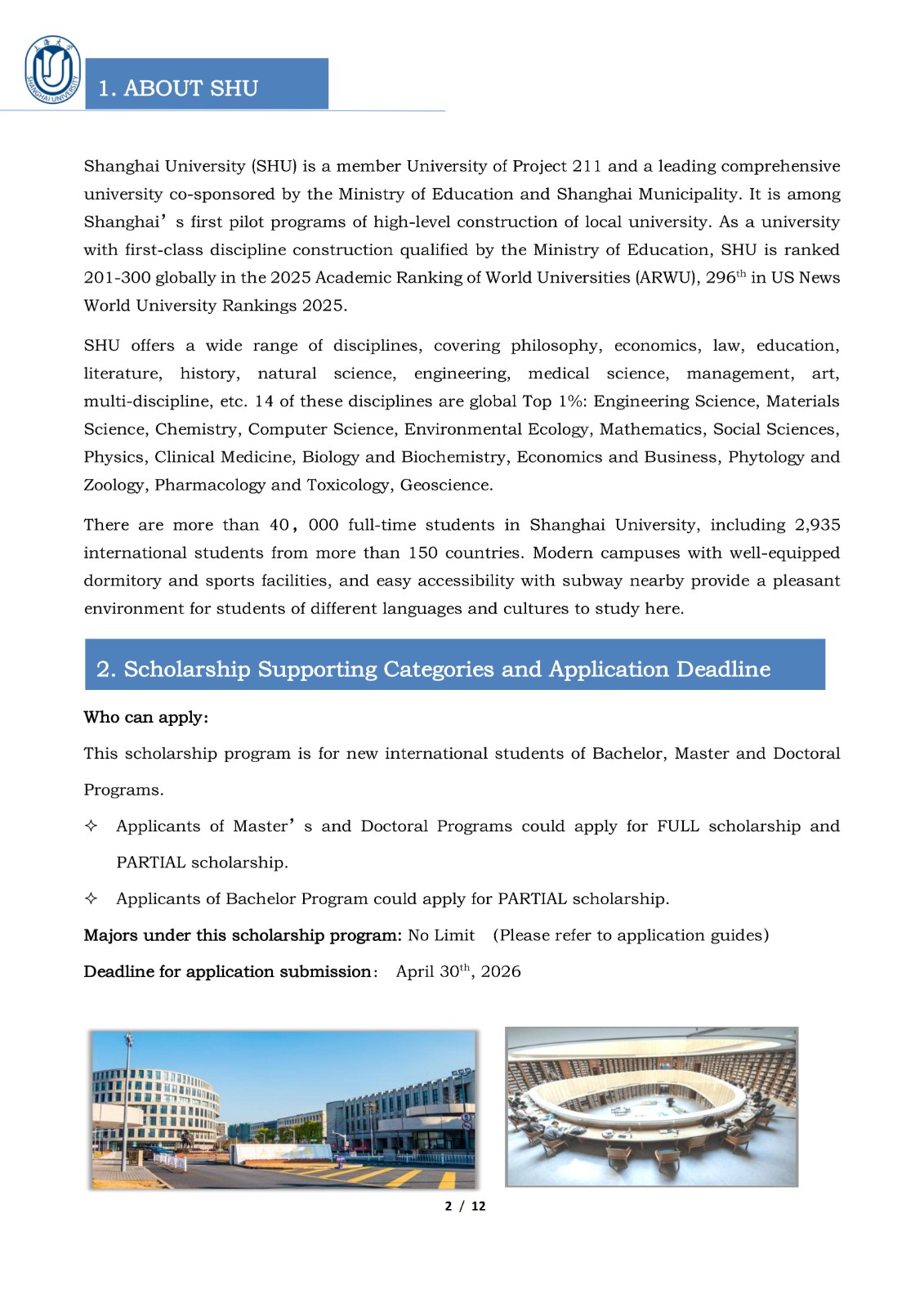 Application Guide for Shanghai Government Scholarship - Shanghai University 2026