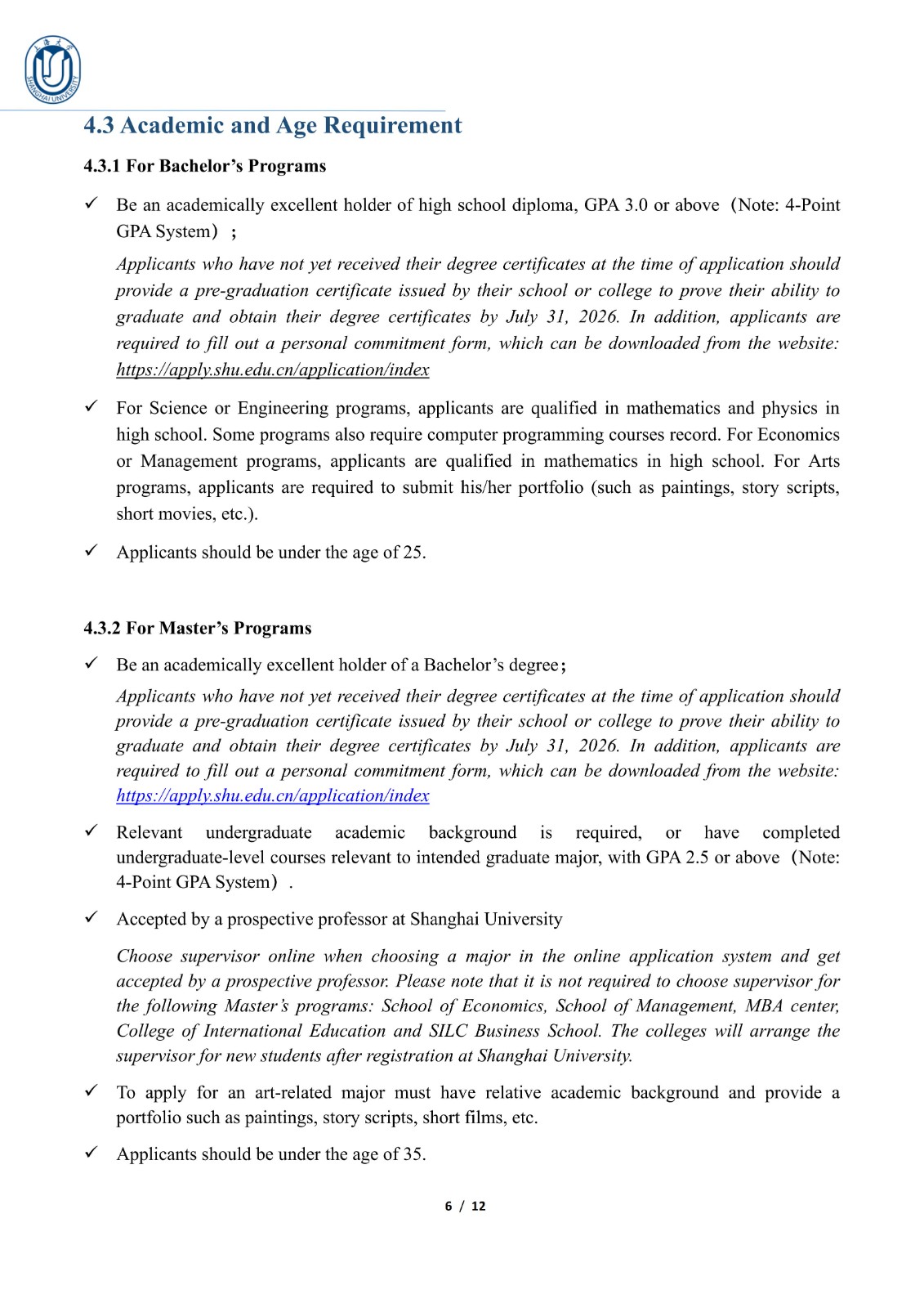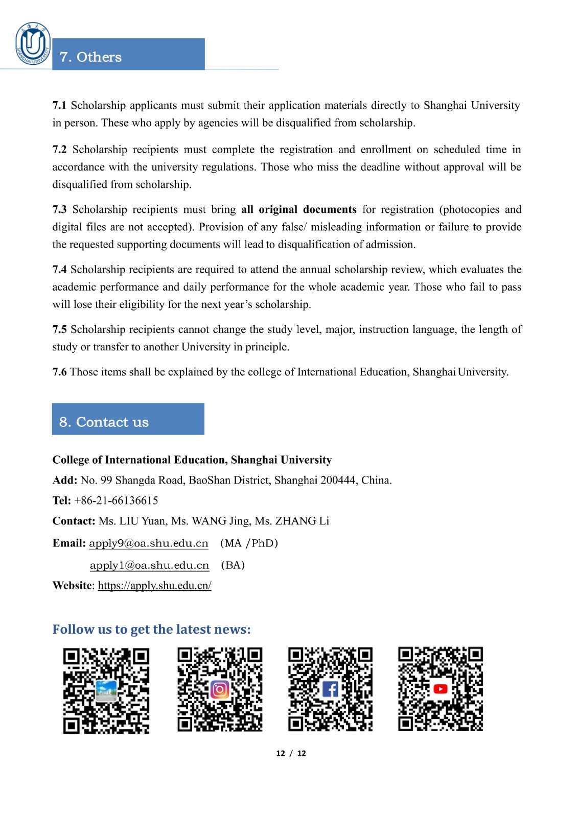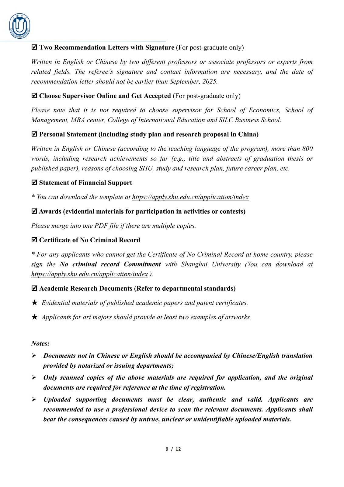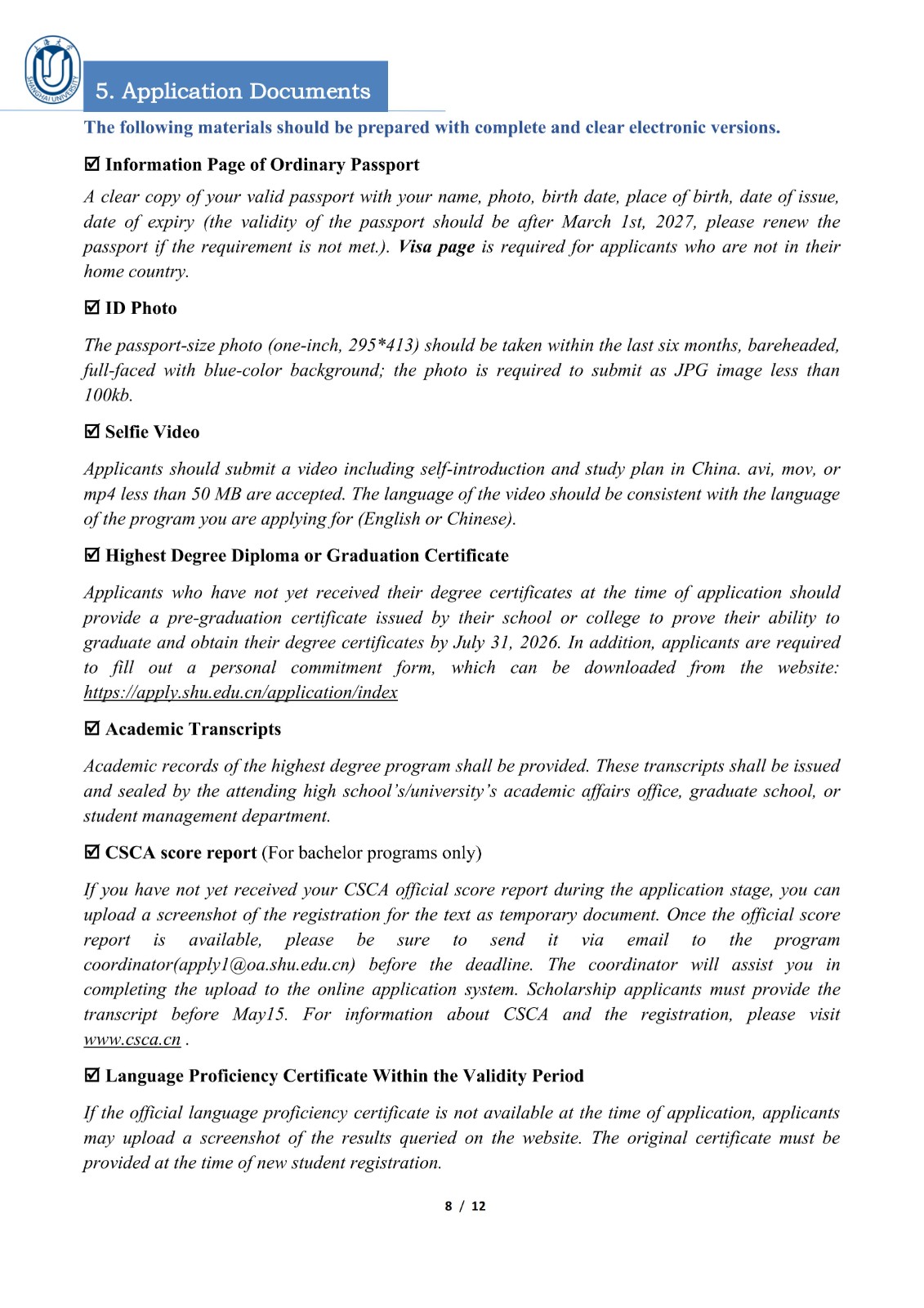 Application Guide for Shanghai Government Scholarship - Shanghai University 2026