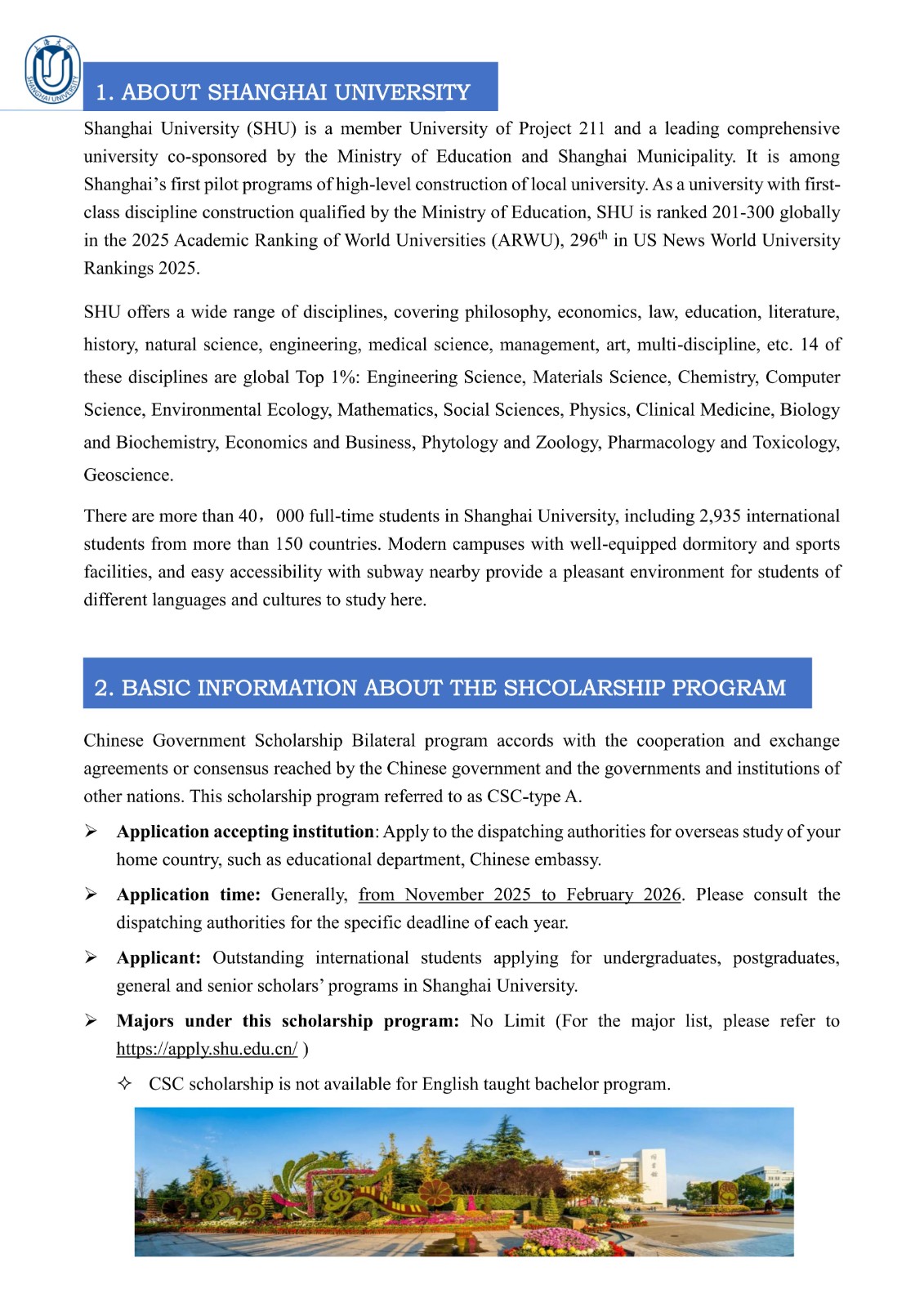 CSC Scholarship- Bilateral Program (CSC Type A), Shanghai University 2026-2027