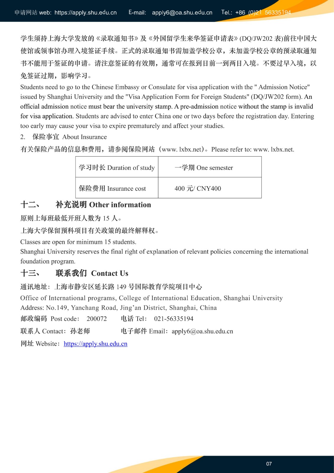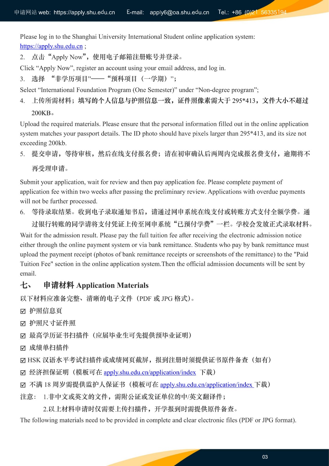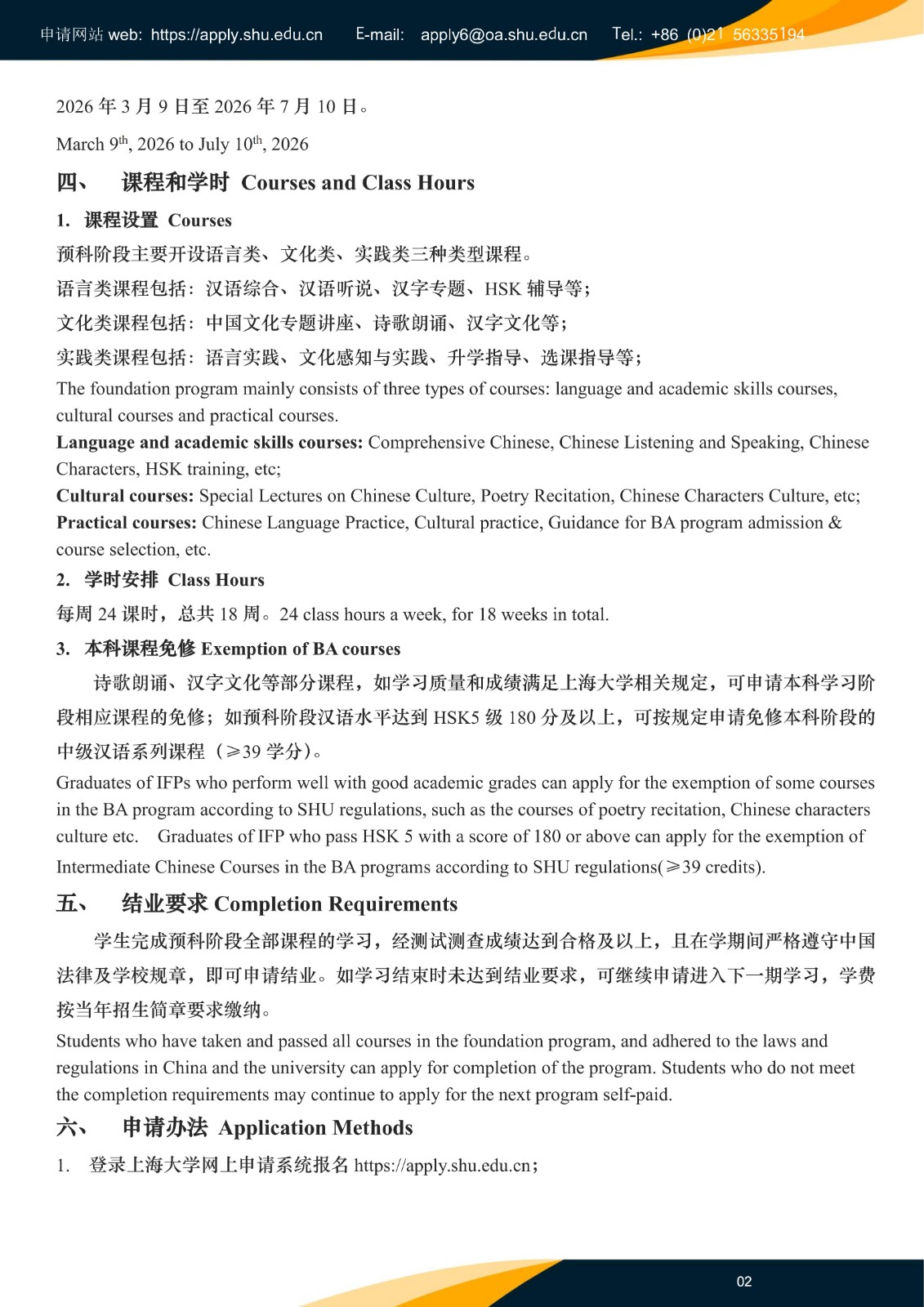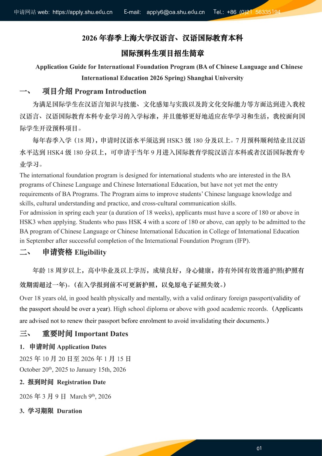 Application Guide for International Foundation Program (BA of Chinese Language and Chinese International Education 2026 Spring) Shanghai University