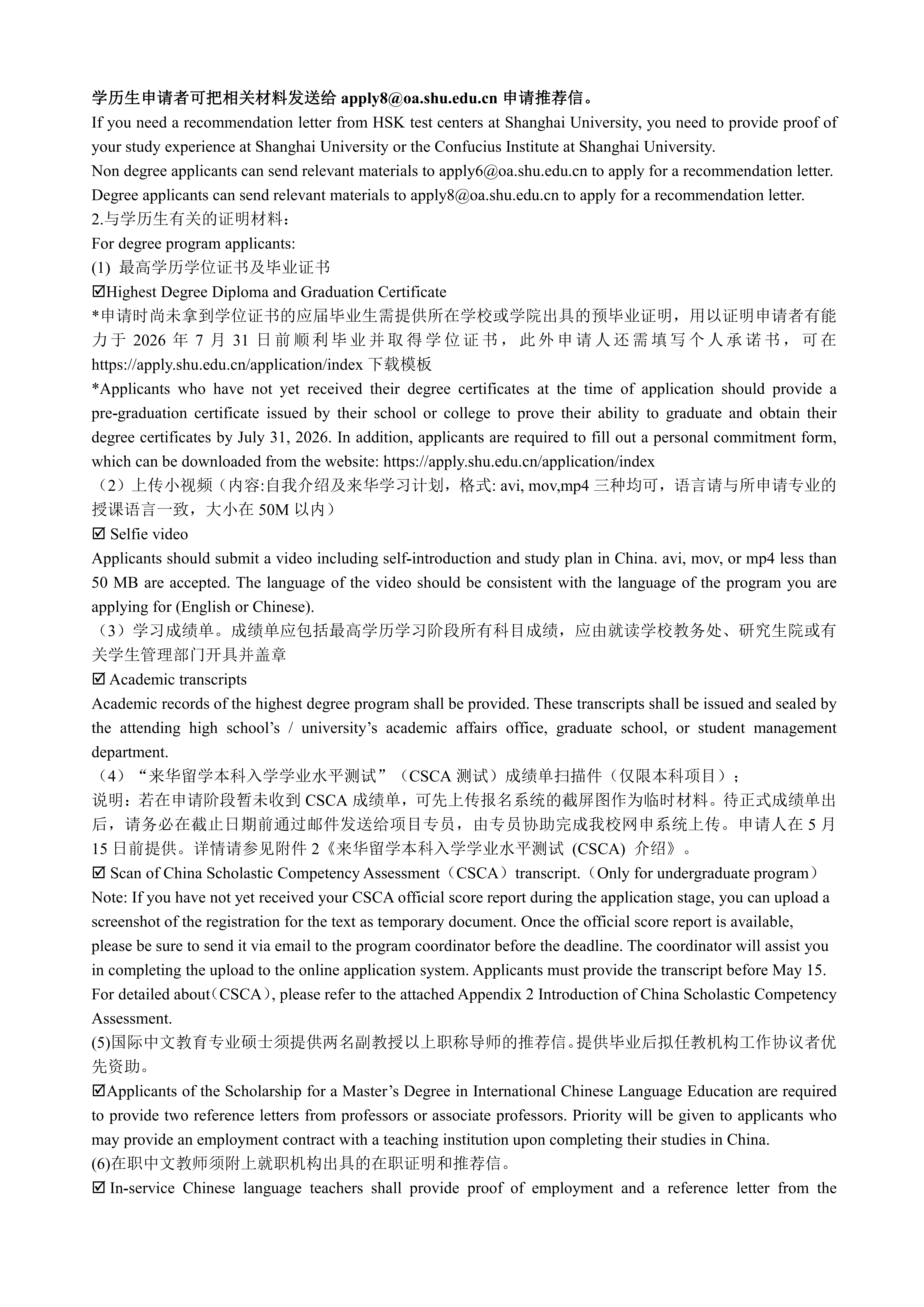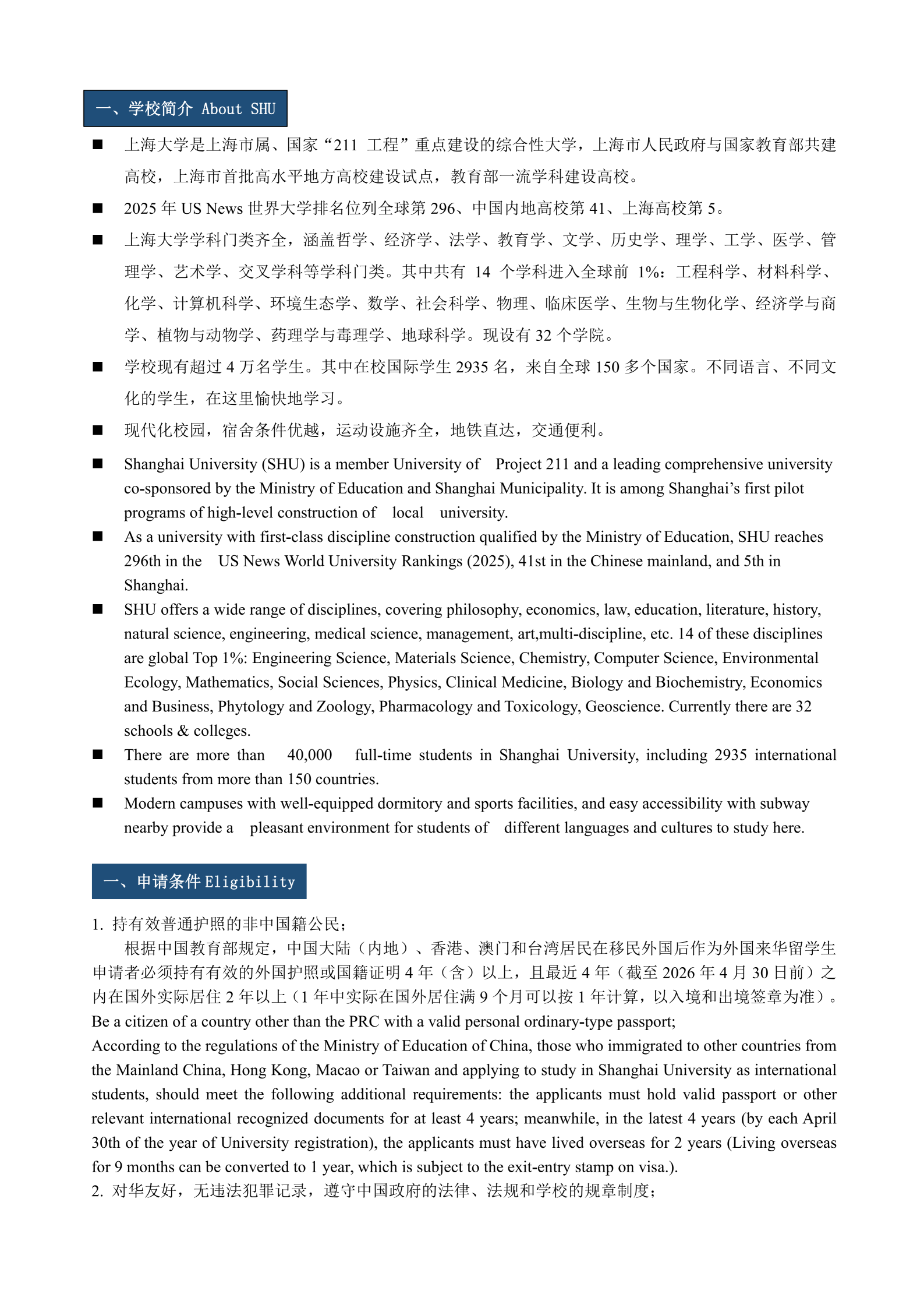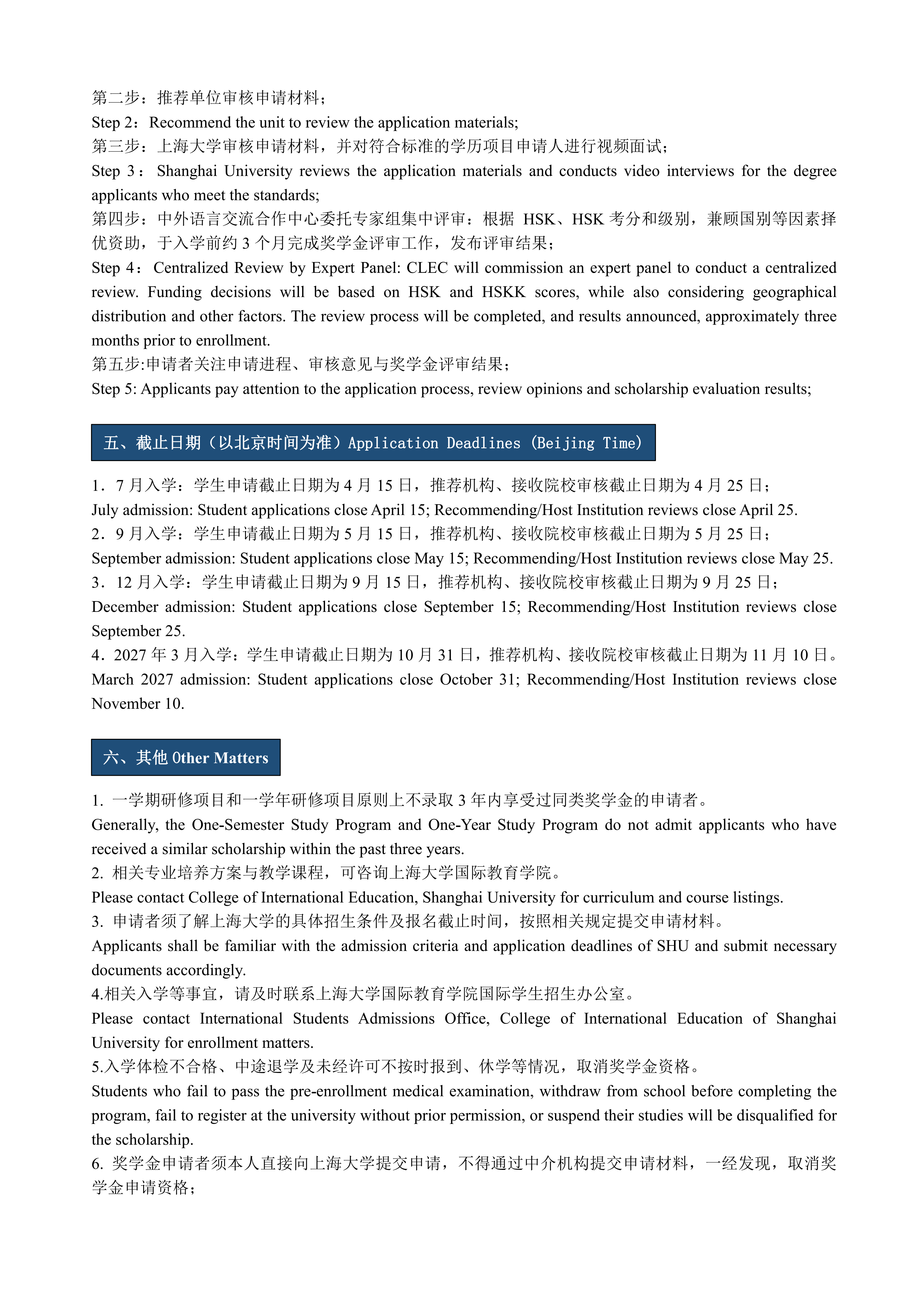 Application Guide for International Chinese Language Teachers Scholarship of Shanghai University 2026